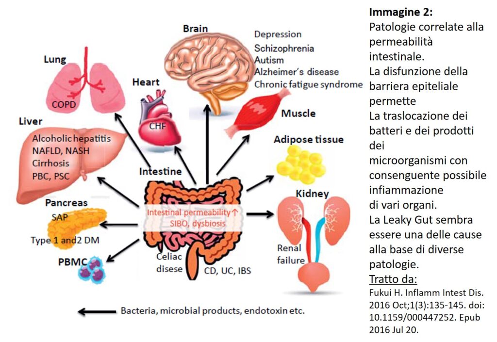 Così il passaggio di elementi indesiderati, tra i quali piccoli frammenti di cibo non del tutto digeriti, microrganismi ecc, genera una situazione di infiammazione che si ripercuote a livello sistemico.